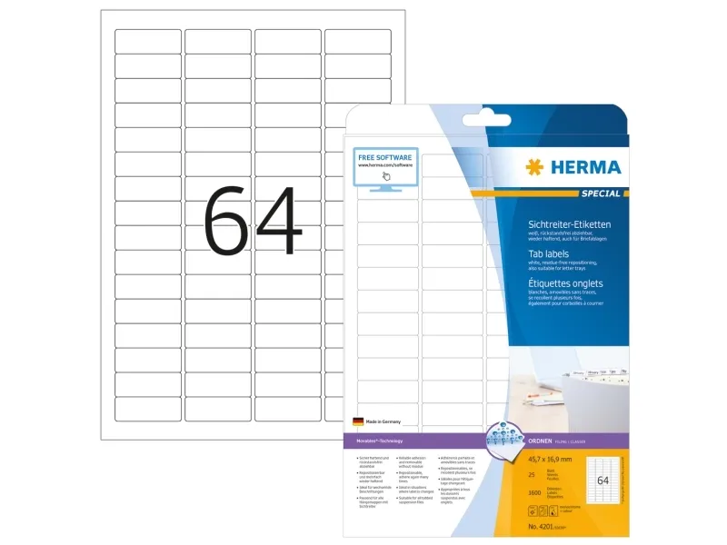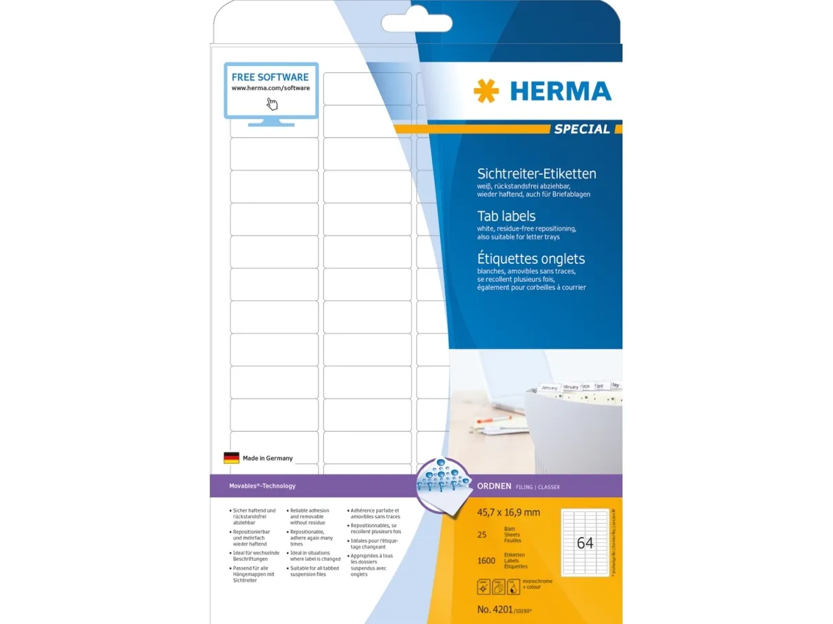 HERMA Special - Hvit - 45.7 x 16.9 mm 1600 etikett(er) (25 ark x 64) selvklebende avtakbare matte papirfliketiketter