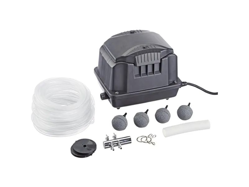 Havedam-iltning PondoAir Set 1800 Pontec PondoAir Set 1800 er et luftpumpesæt. Det er nemt at installere og sikrer en pålidelig iltforsyning af havedammen Sættet er egnet til udendørs anvendelse og består af en stille solid luftpumpe med en effekt på 1800 l/h, en luftfordeler, et 4 x 5 m langtluftkabel, samt 4 udstrømningselementer og ekstra membraner. Pumpen er TÜV-testet og stænkvandsbeskyttet (beskyttelsesklasse IP44).