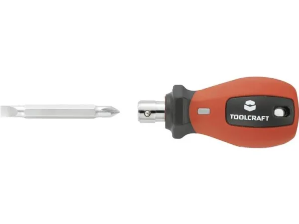 8 i 1 skruetrækker med dobbeltbit Særligt egnet til arbejder under begrænsede pladsforhold. Greb med ophængshul. Dobbeltbit til lige kærv og krydskærv