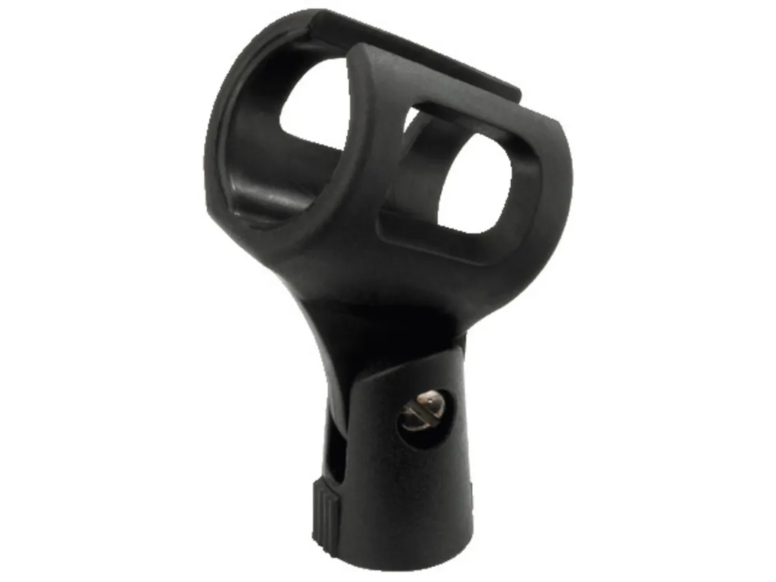 Monacor MH-152 mikrofon-klemmeholder Mikrofonholder, dia. 32-42 mm, af sort, fleksibel plast Specielt til trådløse håndmikrofoner med det normalt tykkere grebomfang 16 mm standardgevind ( 5/8)