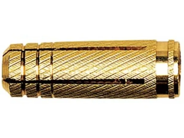 The fischer brass fixing MS is an expansion plug made of brass for holding a metric thread. The special fixing is set in the pre-positioned installation. When driving in the screw or the threaded rod the brass fixing expands and anchors itself in the drill hole. Above all, the fischer brass fixing MS is suitable for fixing shelves, flow heaters, and aggregates in solid building materials.