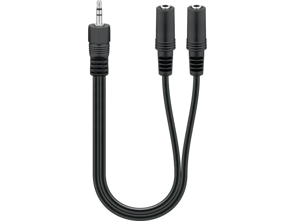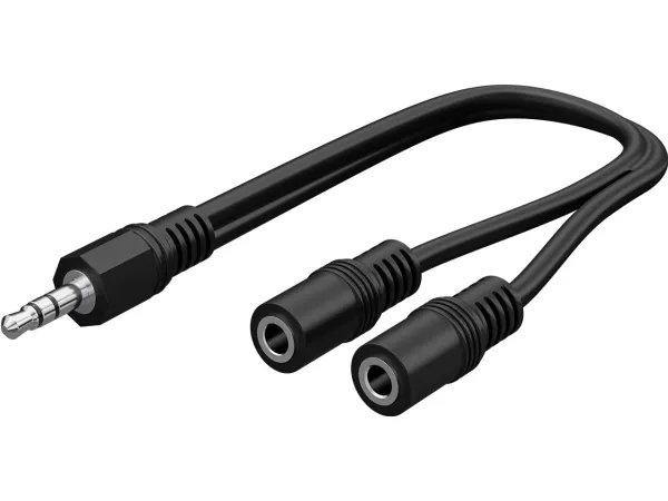 Pal 3,5 mm stik (3-polet, Stereo) > 2x pal 3,5 mm stik (3-polet, stereo) Kabellængde Splitter lydsignalet fra en enhed til 2 separate udgange, som hver især kan bruges med hovedtelefoner. Jack-adapter til tilslutning af f.eks. 2 hovedtelefoner eller højttalere (3,5 mm AUX-indgang) med en multimedieenhed som f.eks. en smartphone eller tablet (3,5 mm AUX-udgang) Nyd alle dine yndlingssange eller film fra én lydkilde til to med Goobay AUX-adapteren Forniklede jackstik med bøjningsbeskyttelse sikrer ensartet lyd og perfekt lydkvalitet uden interferensstøj. Jack-kabel fremstillet af fleksibel PVC-kappe AUX-adapterkabel med dobbelt afskærmning for klar signalkvalitet