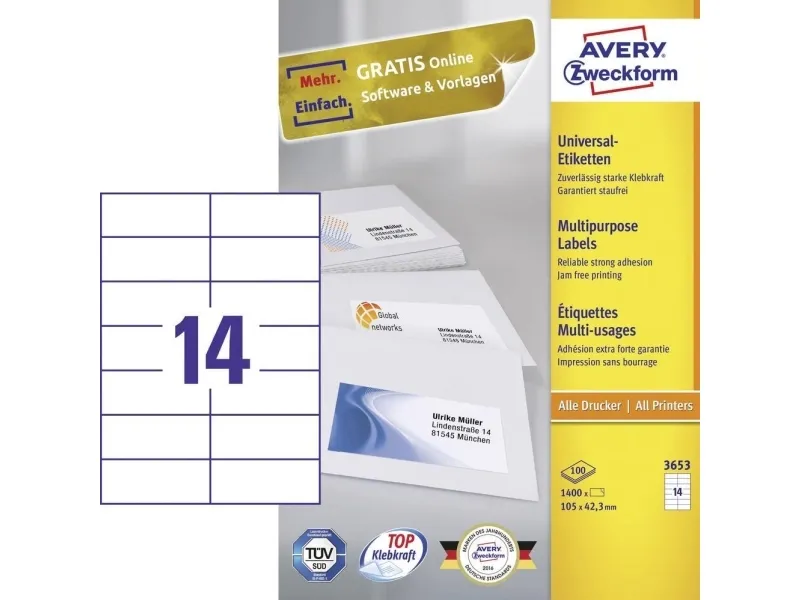 Avery - flerbruks merkelapper - 1400 etikett(er) - 105 x 42.3 mm