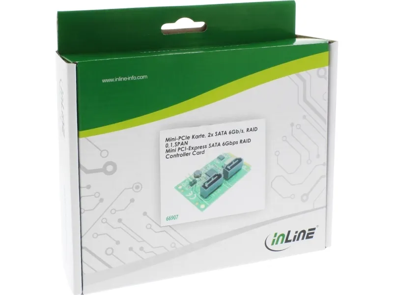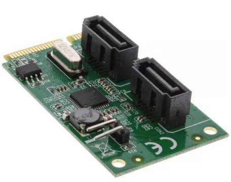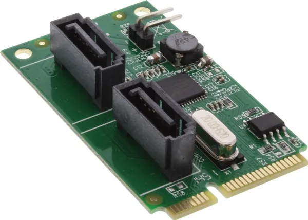 Mini-PCIe 2.0 card with 2x SATA 6Gb/s connector (L-shape) with RAID function (0,1,SPAN)
