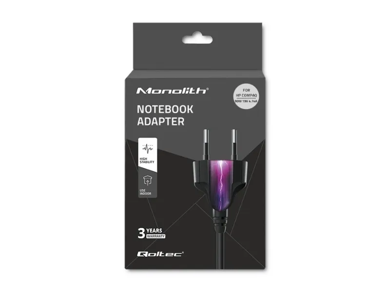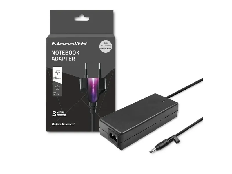 Modern, high-efficiency, Qoltec AC adapter dedicated for HP Compaq laptop. You can enjoy it at home and at work, as a primary or backup power supply. Equipped with advanced technologies (security) overvoltage, overload, short circuit and overheating, it is safe to use. It is characterized by low energy consumption and high efficiency. Includes power cord and velcro where you can adjust the length of the Qoltec adapter cable. \nWe invite you to familiarize yourself with the full range of our power supplies.