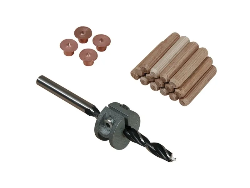dowel Set For nøjagtig mærkning af dyvel huller til træ, krydsfiner, spånplader, fiberplader boremaskine med præcisions-jord sporer og centrering · bore dybde justering af dybdeanslag. Bemærk! Dette produkt er blevet maskineoversat.