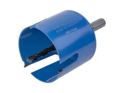 Universal hole saws with shank and drill\n\n - for wood, plastic materials, brick walls, tiles, gypsum blocks, porous concrete, eternit, heraklith plates, bricks, gypsum plaster boards\n- with special TCT cutting edges for precise cuts\n- excellent discharge of chips due to the large chip spaces\n- directly useable - no separate mandrel required\n- material: TCT\n- including: 1 centring drill TCT, ø 8 mm\n- packaging: storage box on card
