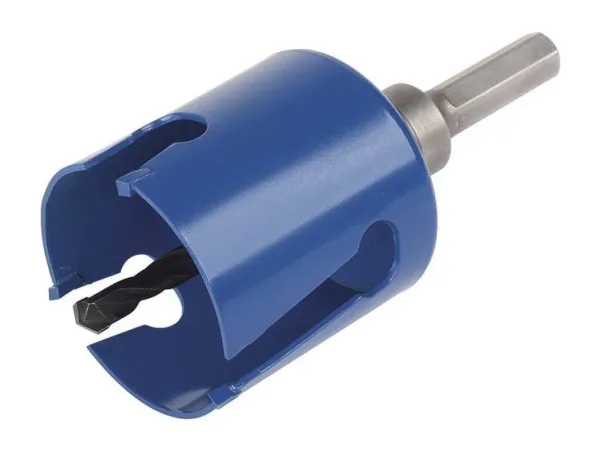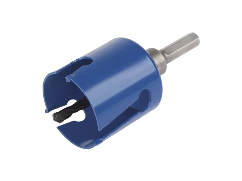 - for wood, plastic materials, brick walls, tiles, gypsum blocks, porous concrete, eternit, heraklith plates, bricks, gypsum plaster boards - with special TCT cutting edges for precise cuts - excellent discharge of chips due to the large chip spaces - directly useable - no separate mandrel required - material: TCT - including: 1 centring drill TCT, ø 8 mm - packaging: storage box on card