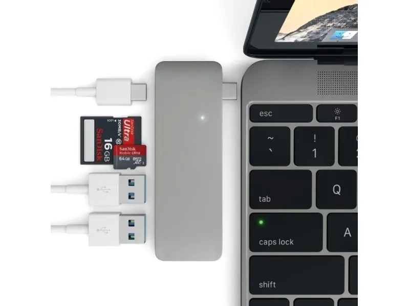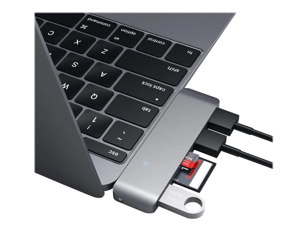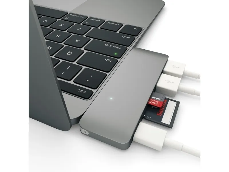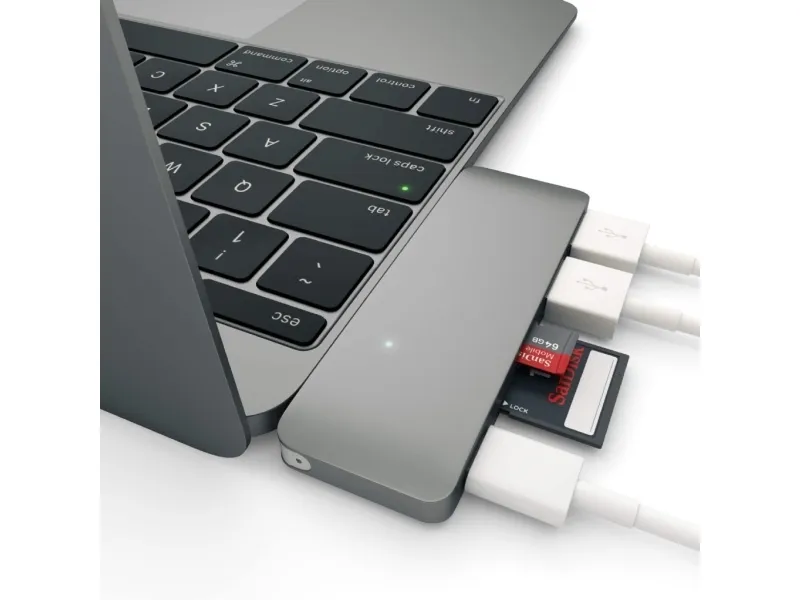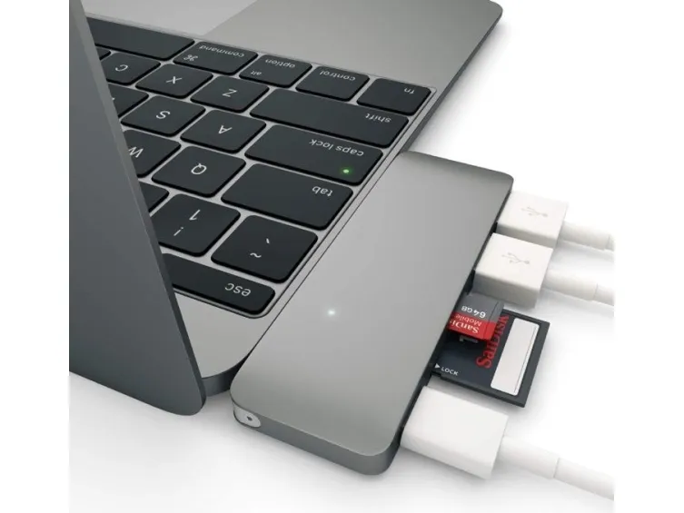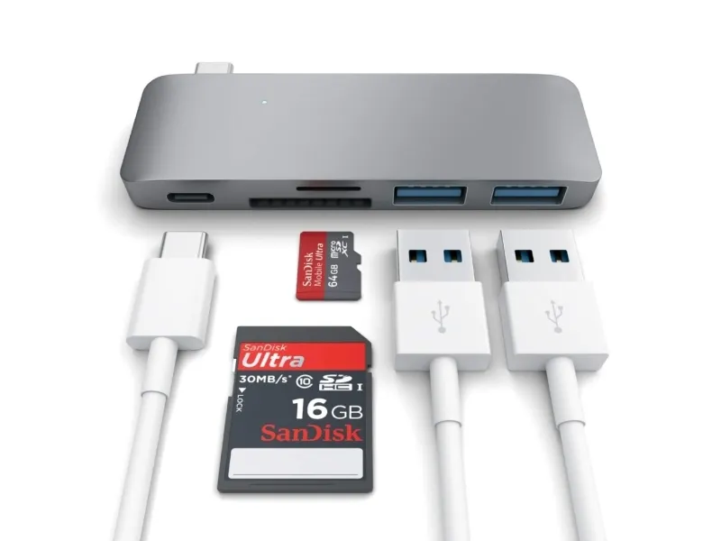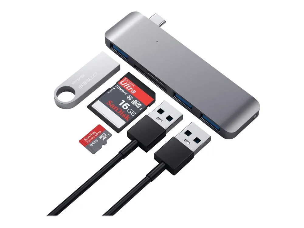 The Satechi Type-C USB Hub allows you to use your old USB peripherals by converting a Type-C USB port to three USB 3.0 ports, an SD card slot, and a Micro SD card slot.