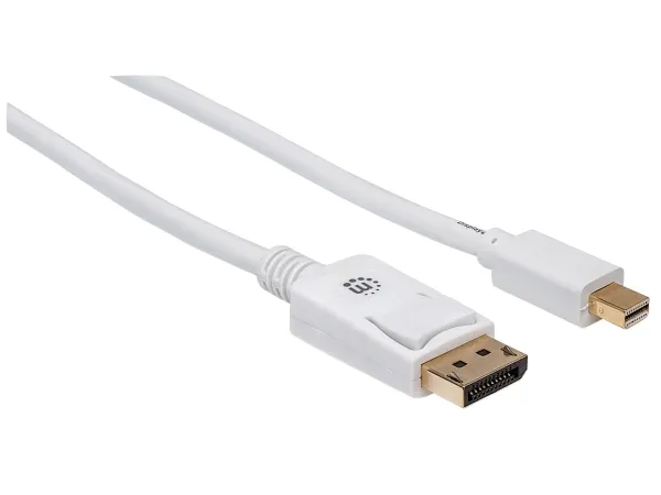 Manhattan Mini DisplayPort Cables provide a single-cable solution that delivers both high-definition digital audio and video signals between desktop and notebook computers and an output device. With 10.8 Gbps bandwidth (1080 Mbps), DeepColor and 24-bit, eight-channel uncompressed audio capability, the 20-pin connector is small, compact and ideal for use with Mini DisplayPort-equipped devices, flat-panel displays, slim-profile devices and many future consumer electronics. Full foil-and-braided shielding, molded boots with strain relief, protective PVC jackets and gold-plated connections help Manhattan Mini DisplayPort Cables provide maximum conductivity and clear, crisp signal transmissions with reduced EMI interference and distortion.