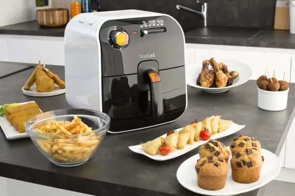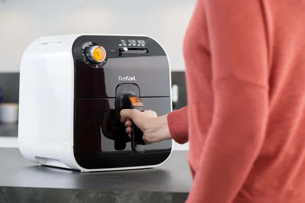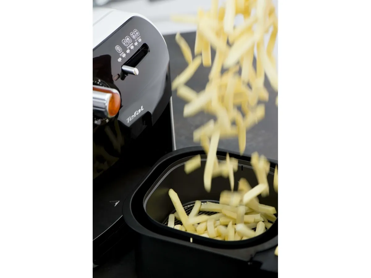 Tefal Fry Delight FX1000. Fryer food capacity: 0.8 kg, Temperature (max): 200 °C, Number of persons: 2 person(s). Construction type: Single, Product colour: Black, White, Control type: Rotary, Scrollbar. Power: 1400 W. Width: 370 mm, Depth: 282 mm, Height: 315 mm