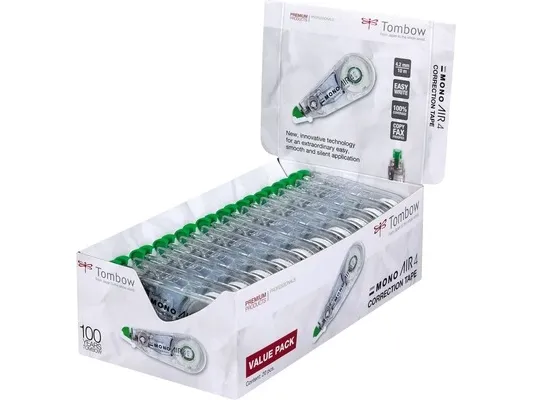 Guarantees an especially easy, smooth and silent application due to its new, innovative technology.\n\nThe correction tape MONO air 4 guarantees an especially easy, smooth and silent application due to its new, innovative technology. MONO air glides especially smoothly over the table. Suitable for left- und right-handed users. No drying time - can be written over instantly and cleanly. Perfect coverage, no copy or fax shadows. Clean and easy application also on uneven surfaces due to flexibly mounted tip. Handy casing with protection cap. Recycling ratio approx. 74 % of gross weight. 4.2 mm x 10 m.