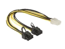This Delock power cable can be used for power supply of PCI Express cards, which need a high power consumption and have two 8 pin respectively 6 pin power connector e.g. graphic cards. At both 8 pin male ports you can remove two pins thus you can get the 6 pin PCIe interface.
