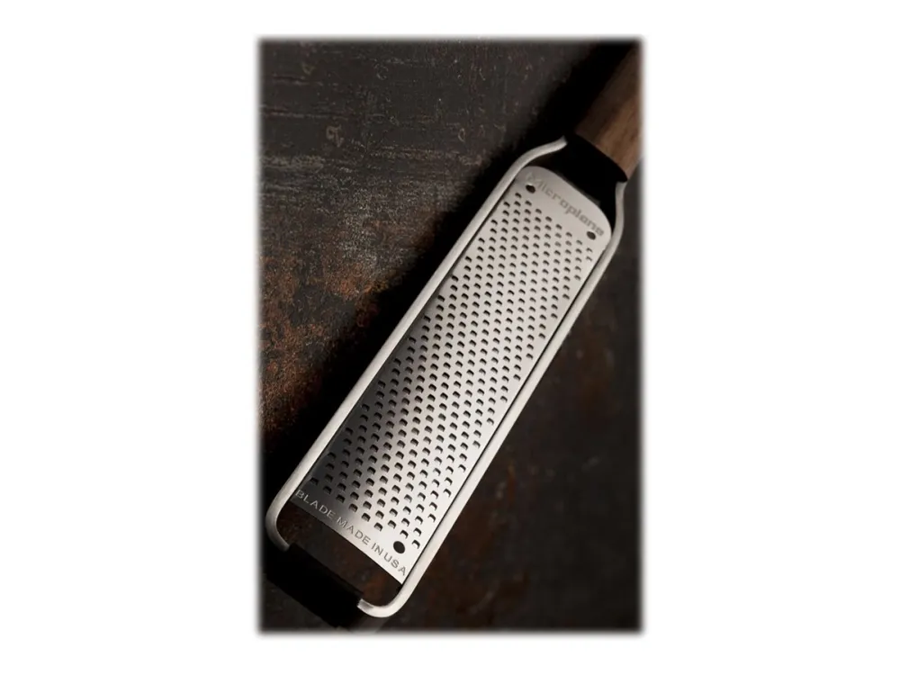 Microplane® launches Master Series, a new collection of elegantly designed hand-held Cheese Graters crafted in walnut and stainless steel. Reflecting Microplane’s iconic wood shop heritage and today’s popular craftsman styling, Master Series offers the best in contemporary styling, durability, and flawless performance. The exceptionally beautiful, oiled walnut handles (wood sourced from the U.S.) are comfortable to hold and add a distinctively warm and chic design to kitchen decors. Delivering superior results every time and years of enjoyment, Master Series is the perfect choice for the craftsman in the kitchen. The made in USA blade has super sharp teeth to increase its efficiency. It does not rip or tear the food and prevents bruising.