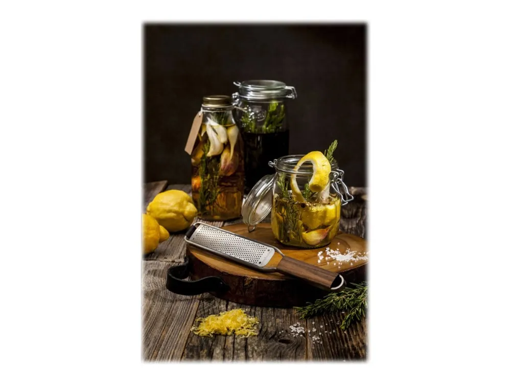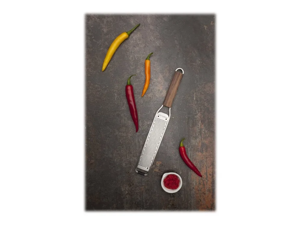 Zest citrus at the perfect depth to only get the zest, and not the bitter white pith. It is a multi purpose tool that is recommended for grating garlic, grating ginger, grating parmesan cheese. You can also use this tool as a nutmegor cinnamon Cheese Grater.Microplane Master Zester. Product type: Rasp grater, Product colour: Brown, Silver, Blade material: Stainless steel. Width: 39 mm, Depth: 15 mm, Height: 310 mm