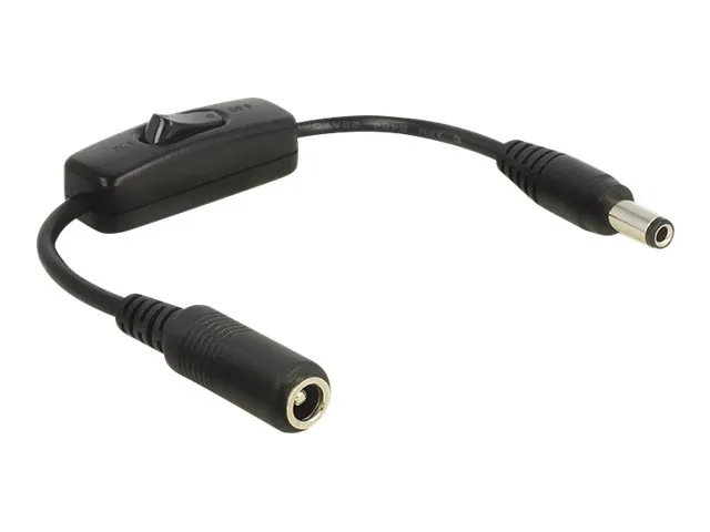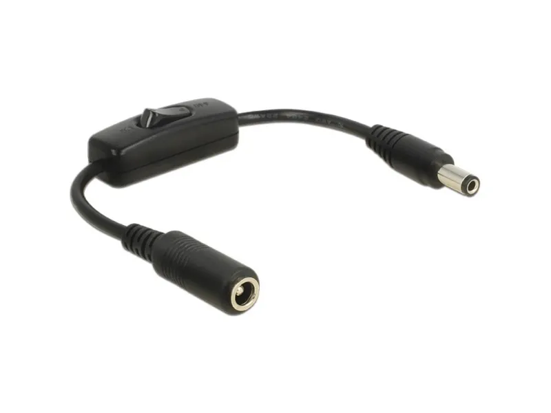 This cable by Delock can be connected to a DC power port. By using the on / off switch the power supply for the connected device can be switched on or off. Therefor it is not needed to remove the cable from the female port to switch off the power supply.