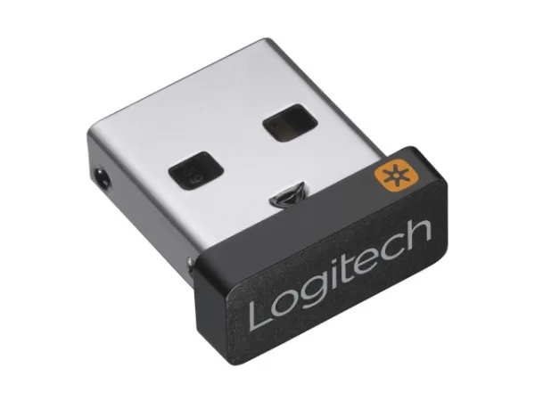 Logitech Unifying-mottakeren er en bitteliten, trådløs mottaker som kan stå i en av usb-portene på den bærbare datamaskinen hele tiden, og som gjør det enkelt å kople til opptil seks kompatible, trådløse mus og tastaturer. Du trenger ikke å ta den ut når du er på farten, så du slipper å bekymre deg for å miste den.