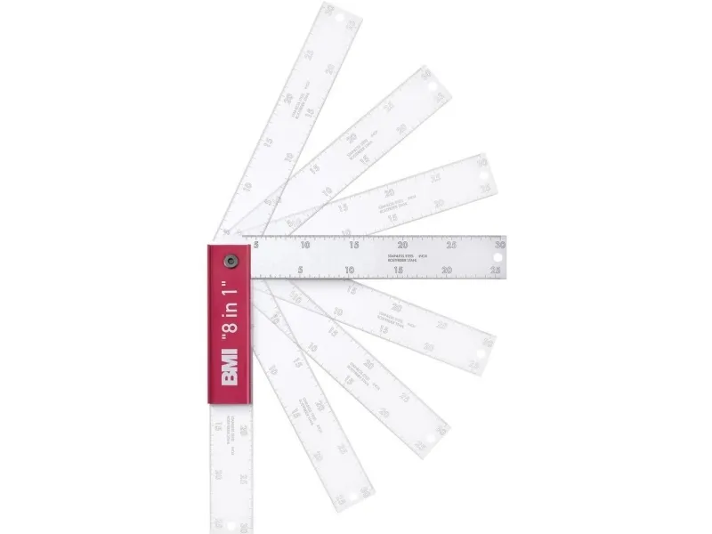 BMI geringsvinkel 400 mm Klapvinkel med 8 faste låsninger: 0°, 22,5°, 45°, 67,5°, 90°, 112,5°, 135° og 157,5° permanent nøjagtighed +/- 0,05° = 1 mm/m ben af eloxeret aluminiumklinge af rustfrit stål skala på begge sider Tømrer- og geringsvinkel! Er lille til tasker og værktøjskuffert.