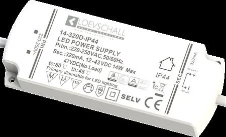 ID-LED Dæmpbar driver til 320mA +10/-10% spot 4,5W-15W, HBL= 16x45x115mm, med fordelerboks til 6 udgange