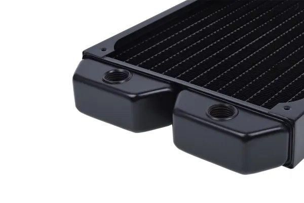 Fin spacing is always an important factor in radiator design. The new series from Alphacool has a fin design which allows it to perform extremely well even with slow-spinning and medium-speed fans. This is not only pleasant thanks to the fact that it avoids unnecessary noise; it also means that the choice of fans that can be used with these radiators is not restricted.