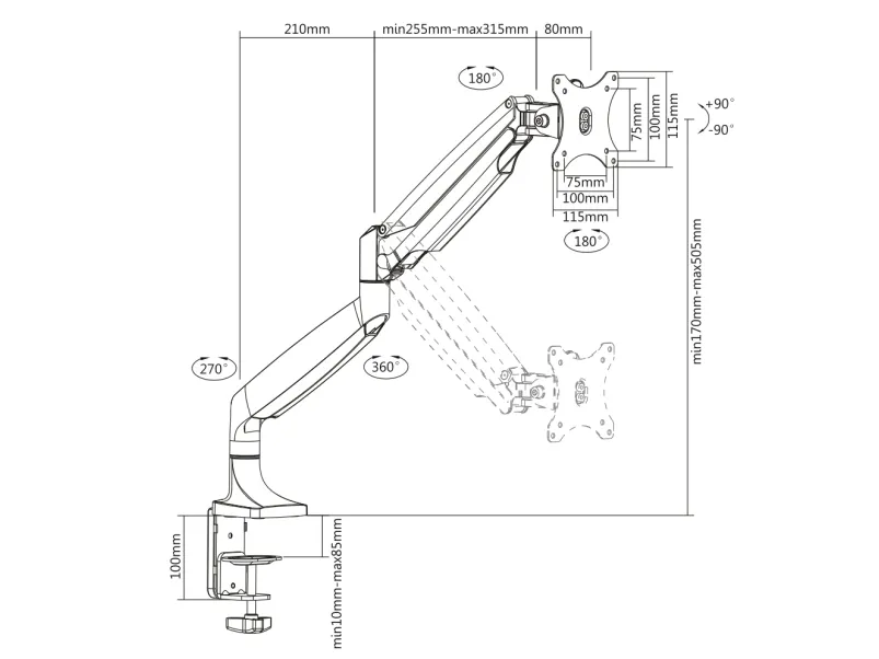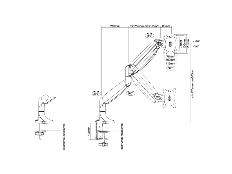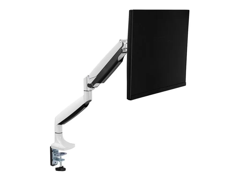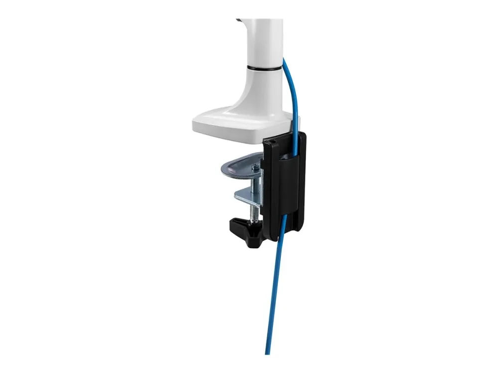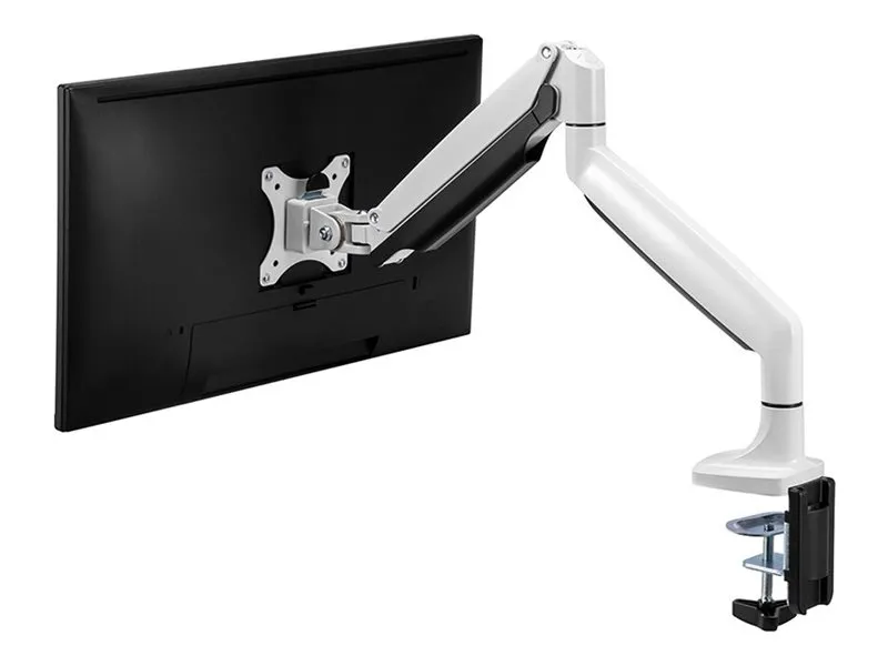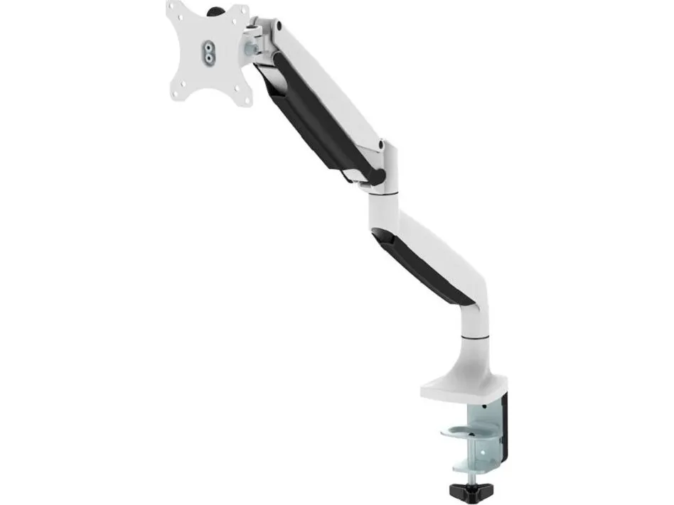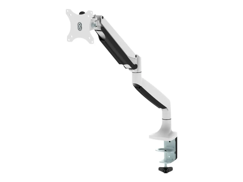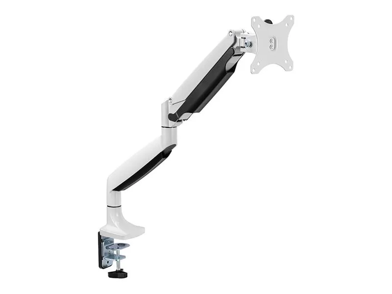 The Neomounts desk mount, model NM-D750WHITE is a tilt, swivel and rotatable desk mount with gas spring for flat screens up to 32". This mount is a great choice for space saving placement on desks using a desk clamp or grommet mount. Neomounts unique tilt (180°), rotate (180°) and swivel (360°) technology allows the mount to change to any viewing angle to fully benefit from the capabilities of the flat screen. The mount is easily height-adjustable from 17 to 51 centimeters using a gas spring. Depth-adjustable from 0 to 61 centimeters. A unique cable management conceals and routes cables from mount to flat screen. Hide your cables to keep the workplace nice and tidy. Neomounts NM-D750WHITE has three pivot points and is suitable for screens up to 32" (82cm). The weight capacity of this product is 9kg each screen. The desk mount is suitable for screens that meet VESA hole pattern 75x75 or 100x100mm. By using an ergonomic mount neck and back complaints can be avoided. Ideal for use in offices and on counters or in a reception area. All installation material is included with the product.