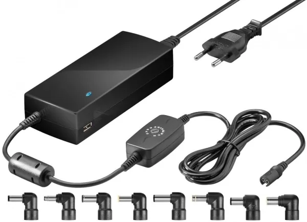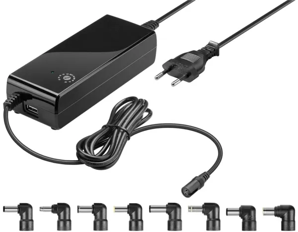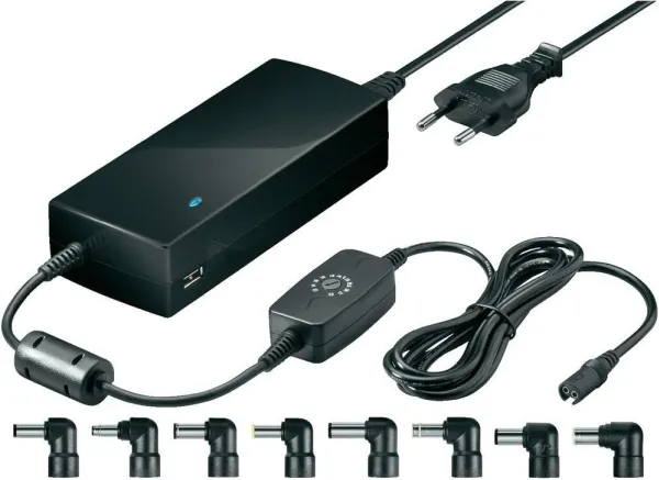 - additional USB connector for Smartphones and Tablets - world-wide use thanks to wide range input (100V - 240V) - stabilized direct current of 6000 mA - output voltage selectable via rotary switch output voltage: - 12 V DC 6000 mA - 14-15-16 V DC 5000 mA - 18-18.5-19 V DC 4200 mA - 19.5-20 V DC 4000 mA - 21-22 V DC 3700 mA - USB Port 5,2 V DC 600 mA - including 8pcs. DC plugs - DC plugs (size: mm) D:6.30x3.00x14.00 Toshiba E: 6.50x1.40x12.00 Fujitsu Panasonic Sony Samsung G: 5.00x 1.00x11,50 Samsung P: 5.50x2.50x12.00 Fujitsu Acer Asus Compaq Gateway IBM Panasonic Samsung Sharp Toshiba Hitachi T: 4.75x 1.70x10.00 HP Pavilion Series X: 5.50x 1.70x 12.0 Acer N: 7.90x0.90(pin)x11.50 IBM Lenovo QV2: 7.40X0.60(pin)x12.50 HP