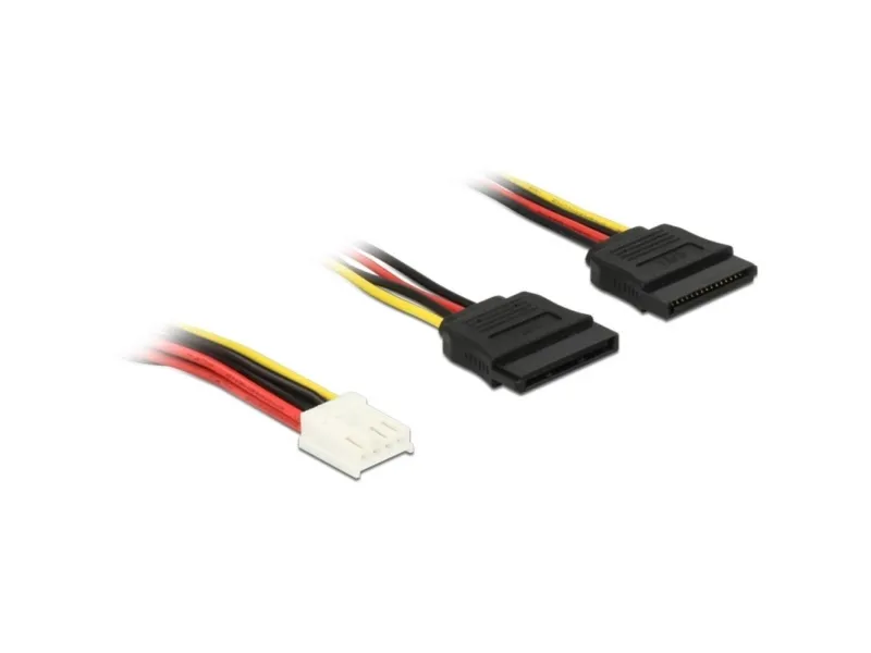 This power cable by Delock can be connected to a Floppy 4 pin power connector plug on a mainboard and it enables the power supply of two drives with SATA 15 pin plug.