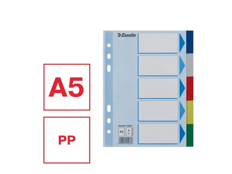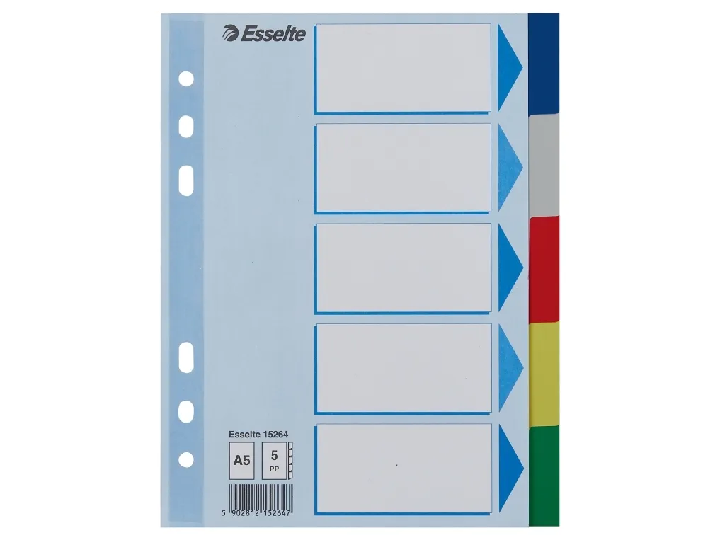 Esselte - Inndeler - 5 deler - for A5 (148 x 210 mm) - med fliker