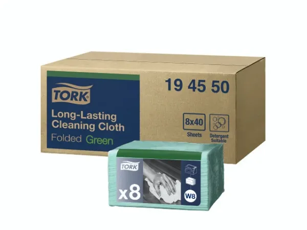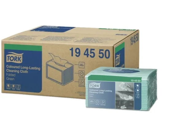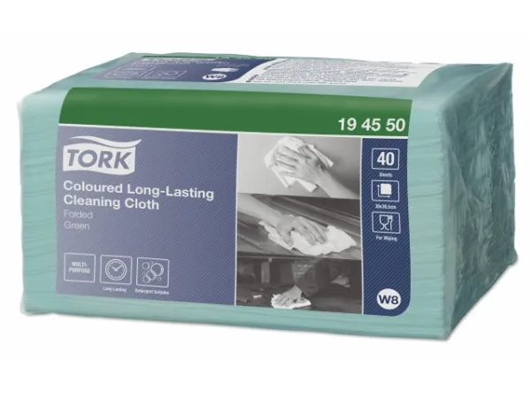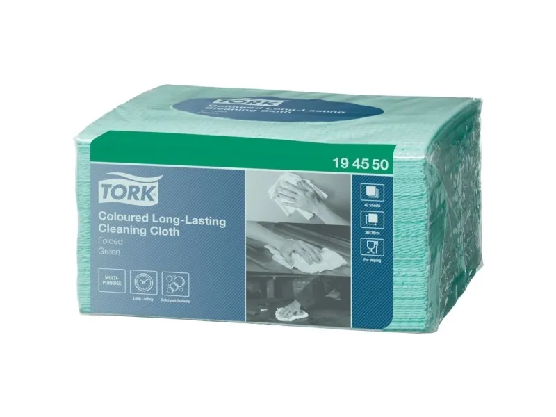 En holdbar og absorberende rengøringsklud, der kan bruges flere gange uden at gå i stykker. Den fås i fire farver, som hjælper dig med at forhindre krydskontaminering.