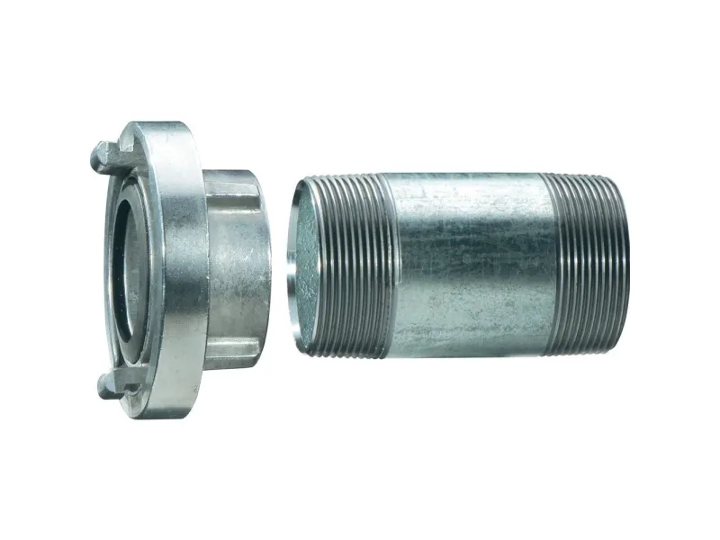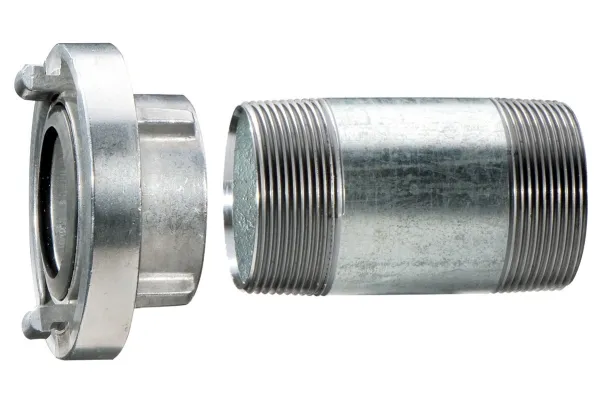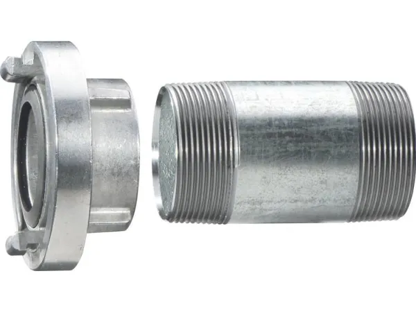 Storzkobling C x 1 1/2 AG 100 mm forlængerrør Storzkobling C med 44,9 mm/1 1/2 indvendigt gevind og 100 mm forlængerrør 47,81 mm/1 1/2 AG, for eksempel til tilslutning af en C-slange til pumpen.