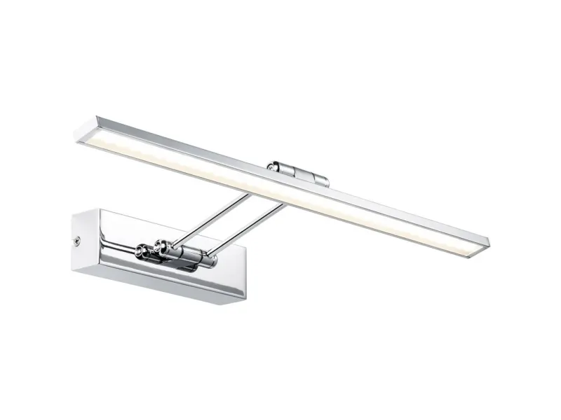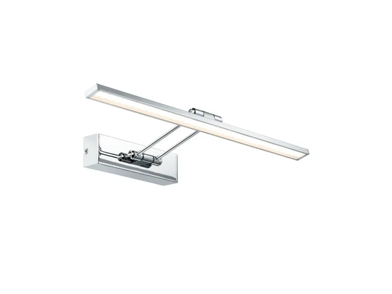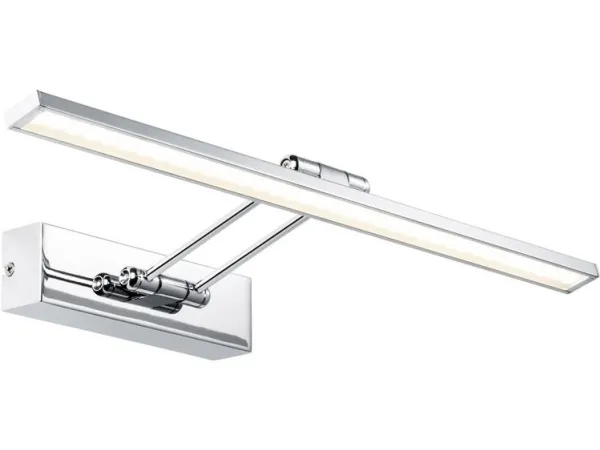 The Galeria LED picture luminaire Beam Fifty 7 W chrome\nIncl. lamps\nThe Fifty picture light excels at putting your artwork in the limelight. It is installed directly over the picture and can be individually adjusted thanks to its two joints, guaranteeing optimum illumination. The linear design goes with every interior style and warm white light creates a pleasant atmosphere in the room.