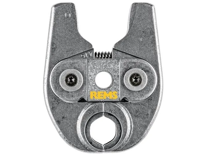 REMS presstænger Mini/REMS pressringe. Tilbehør til REMS Mini-Press Særligt kompakt form og lav vægt for REMS presstænger Mini pga. speciel placering af presstangtilslutningen (patent EP 1 952 948). Fordybninger, der er anbragt i pressebakkerne, til sikker føring af forbindelseslaskerne for forskydningsfri presning (patent EP 2 347 862). Modstandsdygtige presstænger/pressringe i smedet og særligt hærdet specialstål. Presskonturerne fra REMS presstænger/pressringe er systemspecifikke og svarer til presskonturerne for de pågældende Pressfitting-systemer. Derved fejlfri, systemkonform, sikker presning. Presstængernes/pressringenes pressbakker med presskontur, der er indarbejdet meget præcist og afrundet nøjagtigt maskinelt på CNCbearbejdningscentre. Derfor langt mindre fabrikationstolerancer end ved støbt press kontur. Drift med REMS Mini-Press ACC. Læs og overhold systemudbyderens/-producentens indbygnings- og montagevejledning.