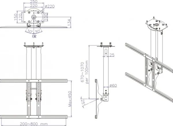 The Neomounts ceiling mount, model PLASMA-C100 is a tilt and swivel ceiling mount for flat screens up to 75" (191cm). This mount is a great choice for space-saving placement or when wall mounting and floor placement is not an option. Neomounts versatile tilt (25°) and swivel (60°) technology allows the mount to change to any viewing angle to fully benefit from the capabilities of the flat screen. The support is easily height-adjustable from 67 to 107 centimeters. If different heights are needed extension poles are available. An innovative cable management conceals and routes cables from ceiling to TV. Hide your cables in the column to keep it nice and tidy. Neomounts PLASMA-C100 has one pivot point and is suitable for screens up to 75" (191cm). The weight capacity of this product is 50kg. The ceiling mount is suitable for screens that meet VESA hole pattern 200x200 to 800x450mm. All installation material is included with the product.