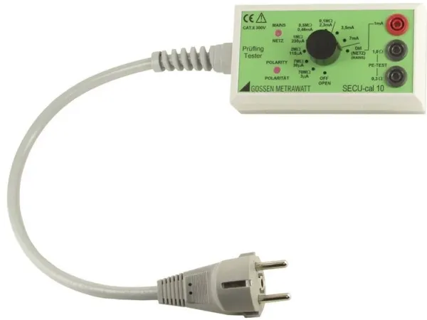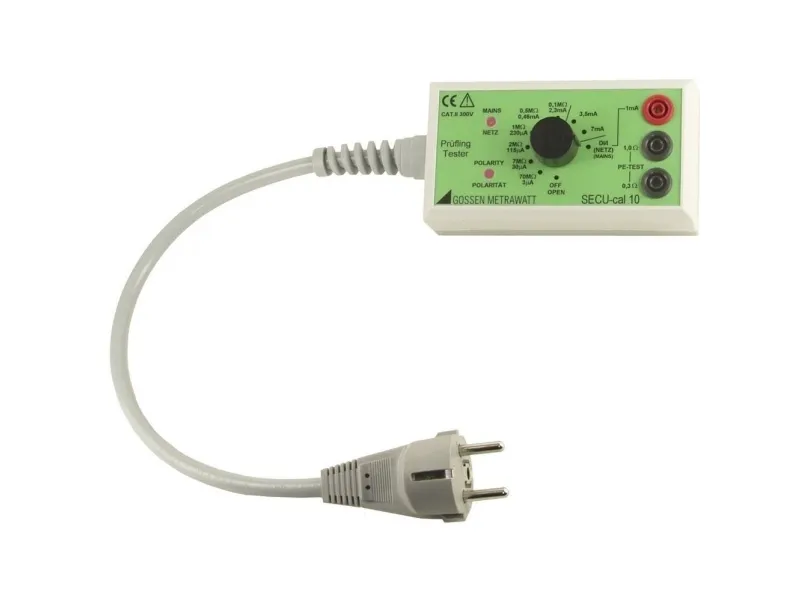 Kalibreringsfunktion adapter SECU-CAL 10 for apparattestere secutest Ved hjælp af adapteren kan følgende målestørrelser kalibreres: • Isolationsmodstand • Reserveaflederstrøm • Differencestrøm • Berøringsstrøm • Beskyttelsesledermodstand (teststrøm max. 1A)