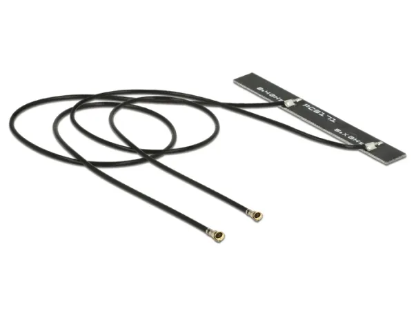 This WLAN twin antenna is designed to integrate into devices with MHF IV connectors. These are two separate antennas with common ground.