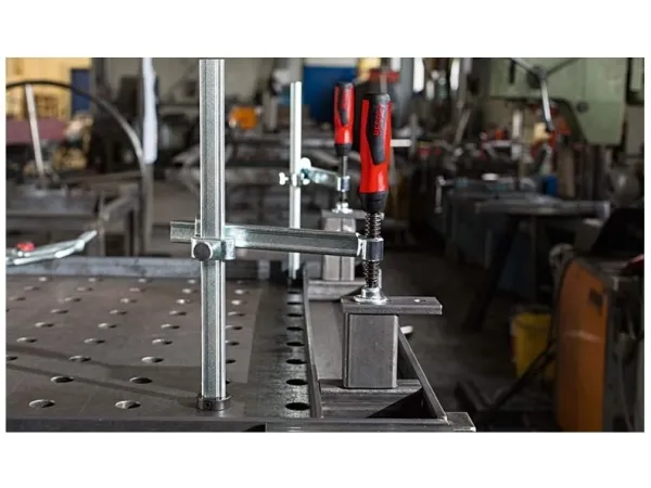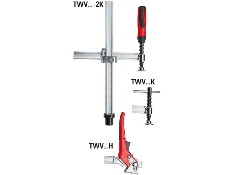 Spændeelement til svejseborde med variabel udladning TWV28 300/175 (kunststofgreb 2K) Positionspræcis, individuel spænding · forædlet profil og glidebøjle til fjedrende og elastisk spænding · trinløs justerbar udladning · førsteklasses 2-komponent-plastgreb samt drejegreb med afrundede ender - hver med letgående trapezgevindspindel og værktøjsfri udskiftelige trykplade. Præcis individuel spænding Hærdet profil og glidebøjle til affjedrende og elastisk spænding Trinløs justérbar udladningFlere udførelser: / Førsteklasses 2-komponent kunststofgreb samt knebelgreb med afrundede ender – med letgående trapezgevindspindel og t