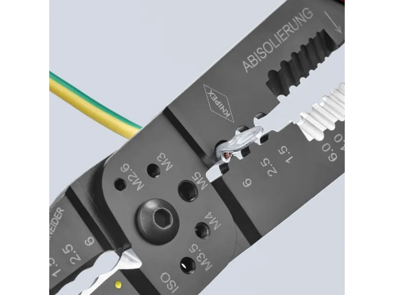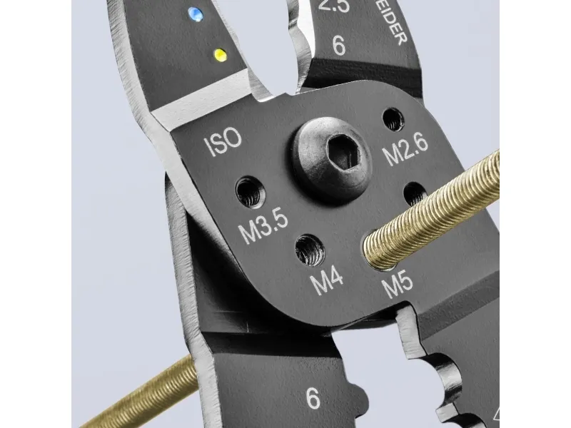 . Med gevindhuller til afskæring af Cu- eller Ms-gevindtapper M 2,6; M 3; M 3,5; M 4 og M 5. Skruet led for høj stabilitet og ensartet løb.