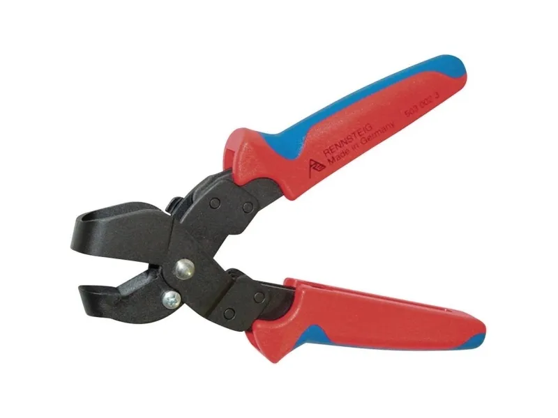 Udhugningstang 16 mm lang greb Til frigørelse af huller i plastkabinetter til el- og sanitetsinstallation. Let trækkende snit. Rene skærekanter. Præcis skæring af gummilæbe på fodlisten. Tangen åbner automatisk. Skærehoved i specialværktøjsstål. Overflade: Bruneret. Klippebredde 16mm. Skæredybde maks. 32 mm. Afrundet. Langt greb med plastovertræk gør det let at skære i stærkere materialer. Fremstillet i Tyskland