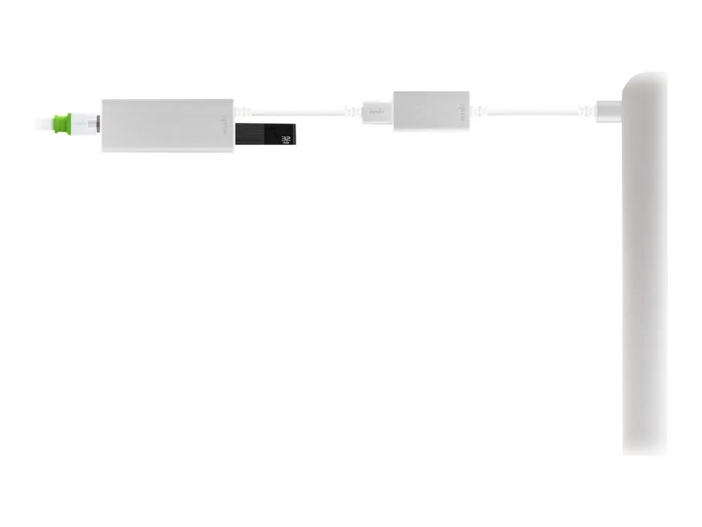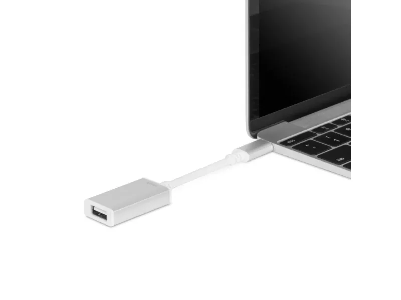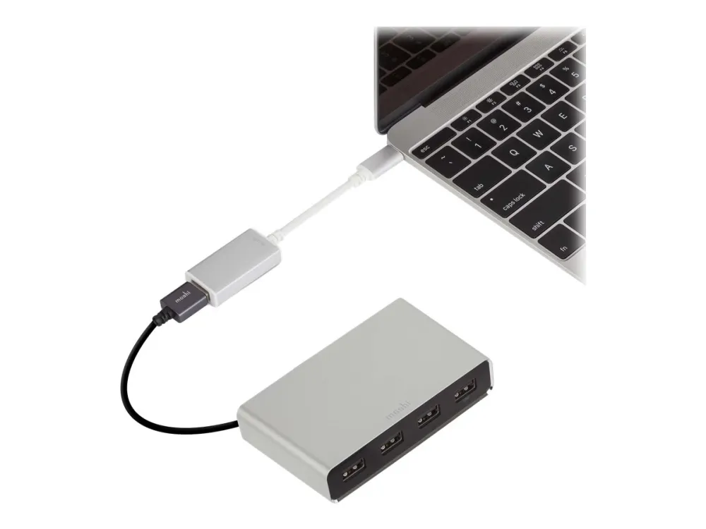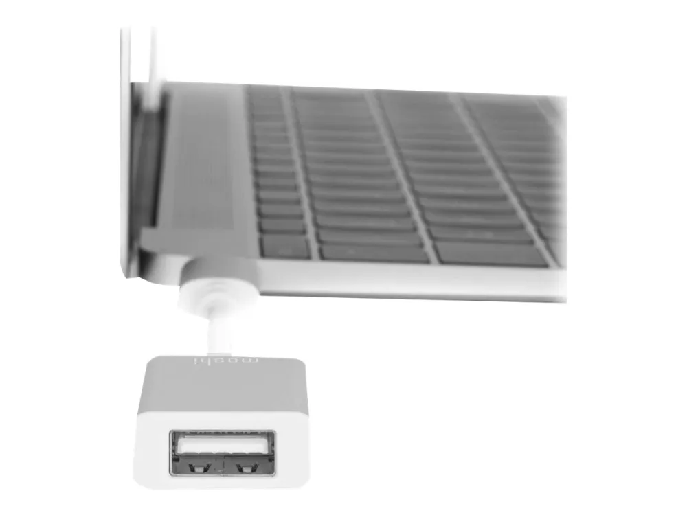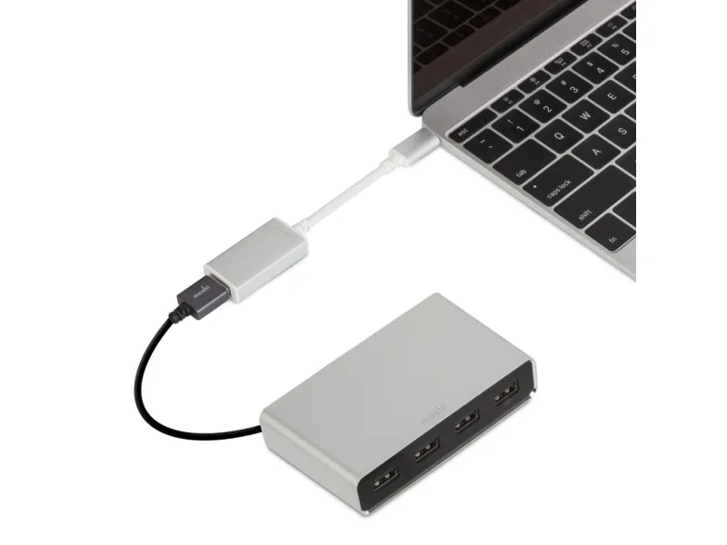 Easily connect any USB device (external hard drive, USB hub, printer, etc.) to your MacBook with Moshi's USB-C to USB Adapter. It is compliant with the latest USB-C specifications to support data transfer speeds of 5 Gbps and up to 3 amps of power output through its reversible USB-C connector. The adapter's aluminum housing protects against electromagnetic interference to ensure reliable data transfer even at the highest speeds. Small and portable, you can also plug in a USB cable to charge/sync your iPhone, iPad, or iPod while on the go.