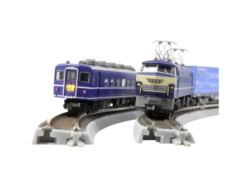 Z Rokuhan spor (med ballast) Det nye Rokuhan-spor er super flot, robust, ekstremt stabilt og nemt at lægge. Ballasten består af et elastisk plastmateriale, skinnerne er udfærdiget af nysølv. De enkelte skinner kan let og sikkert lægges sammen med specielle skinnesamleled. Skinneholderne af metal understøttes her af plastclips på skinnernes underside, som går i hak med et hørbart og mærkbart klik.