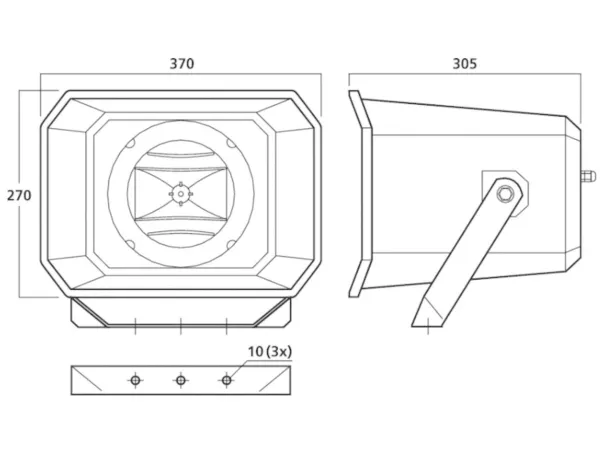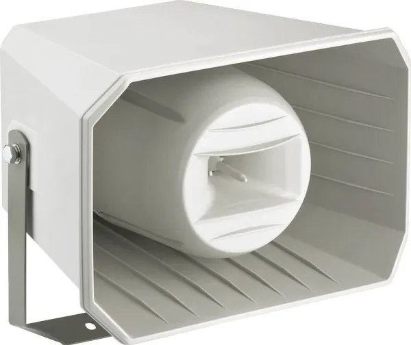 Monacor IT-250TW trykkammer-højttaler God version af et stærkt musikhorn · 16-cm-mellemtoner og 25-mm-horn (1) · Kan anvendes til både inden- og udendørs brug, hvor der altid kræves høje lydtryk og god lyd · ABS-plastkabinet · Monteringsbøjle og skruer i rustfrit stål medfølger · 6 effektudtag, tilslutning via skrueliste. MONACOR-musikhorn er en topmoderne løsning til udnyttelse af et trykkammers rækkevidde ved et betydeligt udvidet frekvensområde. 2-vejs-teknik med dynamisk konus-mellemtoner og horntweeter hæver kvaliteten af klange så langt at den opnår overførsel af stemmers og instrumenters grundtoneområde, der ellers ikke opnås med konventionelle trykkammerhorn. Musikhornene er altid den perfekte løsning, når der kræves optimal stemmevolumen og/eller en fuldstændig virkende musikoverførsel.