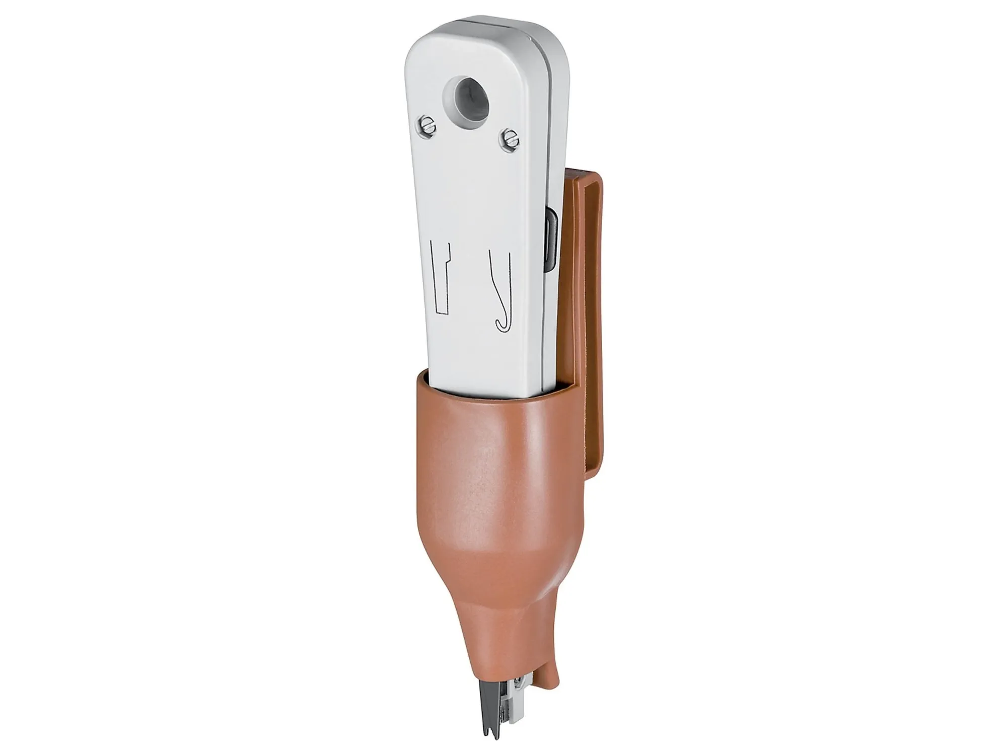 inkl. bæltetaske, til ledningsdiametre fra 0,4 mm til 0,6 mm Praktisk værktøj til at lægge ledninger på IDC-strimler, i netværksstik og patchpaneler Perfekt til kabling af netværks- og telefonforbindelser som RJ45, LAN, DSL, ISDN eller TAE Den lodde-, skrue- og afisoleringsfri forbindelsesteknologi (IDC) betyder, at forbindelsen er lavet i kun ét enkelt trin Fremspringende kabelender afskæres automatisk af installationsværktøjet Med integrerede kroge til at fjerne tidligere eller forkert installerede ledninger fra klemrækken uden at beskadige nabotrådene Universelt egnet til alle netværkskabler, f.eks. i overflademonterede og planforsænkede bokse, patchpaneler eller installationskabler Leveres med en praktisk bæltetaske