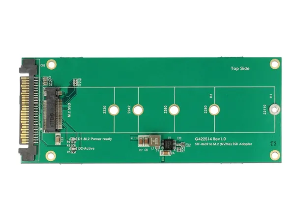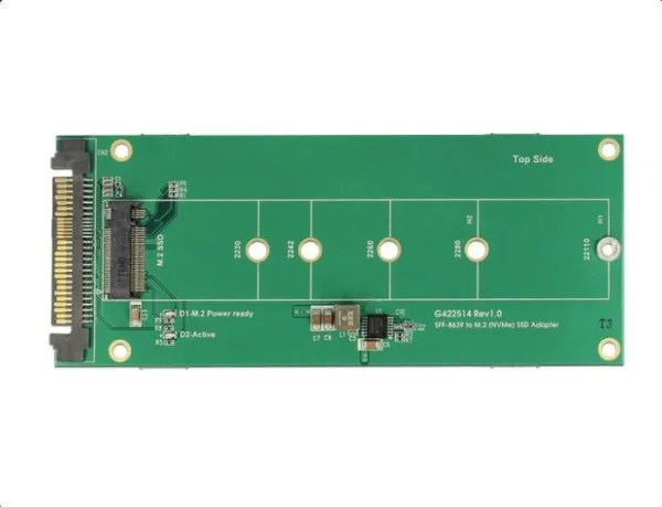 This converter by Delock enables the connection of a M.2 PCIe SSD in 22110, 2280, 2260, 2242 and 2230 format. The converter can be installed into your system internally through the U.2 interface.