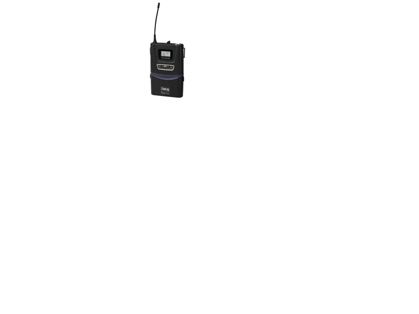 Rapid transmission: due to REMOSET, the frequency of a corresponding hand-held transmitter or pocket transmitter can easily be set up via the receiver. It is possible to remotely set the desired transmission channel at the transmitter via radio signal, no visual contact required. This can even be done during a live performance! An intelligent carrier analysis method provides user support by only allowing transmission channels on which no other transmitter is active.;UHF PLL pocket transmitter,;with REMOSET technology.;#Suitable for combination with headband microphone or earband microphone with 3-pole mini XLR connector;#124 selectable channels in 6 channel groups (506-542 MHz);#Adjustable sensitivity (12 dB to -18 dB);#Selectable attenuation (0 dB/-6 dB/-20 dB);#Lock function;#Backlit LCD for indicating channel and battery status;#Transmitting power: 10 mW (EIRP);#Power supply via 2 x 1.5 V battery AA size (not supplied);; There are restrictions or requirements within the EU!;Please read the notes regarding wireless systems in the section “IMPORTANT INFORMATION”!;How many wireless systems TXS-865... can be operated simultaneously?;With optimum local conditions, it is possible to operate up to 10 wireless systems TXS-865... with 2 microphones each simultaneously.;Manufacturer information:;MONACOR INTERNATIONAL GmbH & Co. KG Zum Falsch 36 28307 Bremen Germany [email protected];Safety Notes and Warning Messages;The unit is suitable for indoor use only. Protect it against dripping water and splash water, high air humidity and heat (admissible ambient temperature range: 0 - 40 °C). Remove the rechargeable batteries or batteries if the device is not in use for a longer period of time (e.g. more than a week). This avoids possible damage through leaking batteries. If the unit is to be put out of operation permanently, take it to a local recycling plant for a disposal which is not harmful to the environment. Batteries and rechargeable batteries must not be disposed of with household waste. They must be disposed of in accordance with local regulations for hazardous waste.