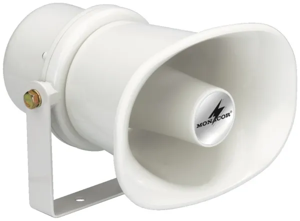 Horn speaker;#100 V transmission technology;#Weatherproof and IP66 tested;#Protected against powerful water jets;#Power selector switch;#For open-air events, industrial use, in workshops;;Manufacturer information:;MONACOR INTERNATIONAL GmbH & Co. KG Zum Falsch 36 28307 Bremen Germany [email protected]