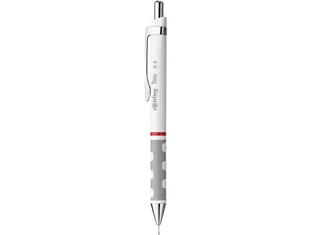 Light-weight mechanical pencil with a rubberised grip. \n- rOtring brass mechanism for precision lead advancement\n- Fixed lead guidance sleeve preventing break and offering an unimpeded view of the \n- page for precise ruler-based drawing\n- Plastic body for a light-weight tool\n- Triangular barrel for relaxed drawing\n- Soft touch rubberised grip for a great comfort\n- Available models using the ISO 3098 color-coding for an easy line width identification\n- Built-in eraser under the push-button cap\n- Refillable. Loaded with high-polymer HB leads