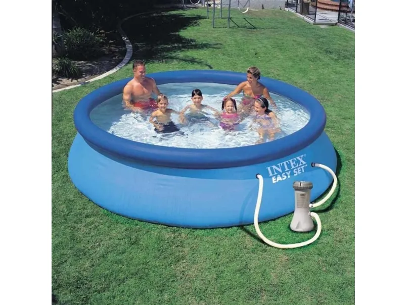 Gjør hagen din til et ferieparadis med dette Intex bassenget med myk kant! Lag plask hele sommeren med Intex Easy Set oppblåsbare basseng som er lett å sette opp og lagre. Dette bassenget vil gjøre hagen din til stedet å være hele sommeren hvor familien kan slappe av og leke. Hydro Aeration Technology er innlemmet i patronfilterpumpen, noe som gir forbedret sirkulasjon og filtrering, forbedret vannklarhet og øker negative ioner ved vannoverflaten. En Krystal Clear patronfilterpumpe er inkludert og er veldig enkel å installere - bare koble til slangene og nyt rent og forfriskende vann. Klar for vann på 10 minutter, spred ut på jevn underlag, blås opp toppringen, fyll bassenget med vann og nyt moroa. Fra 6 år - under tilsyn av voksne. - inkluderer en Krystal Clear patronfilterpumpe med en pumpehastighet 2.006 L / time - omtrent oppsettstørrelse 366 x 76 cm - vannkapasitet 5.621 liter (80%) - klar for vann på 10 minutter