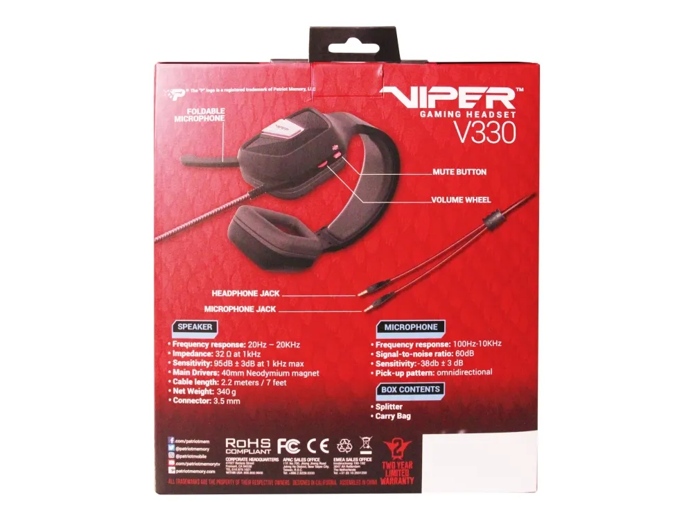 Patriot Viper V330 - hodesett - 3,5 mm jakk