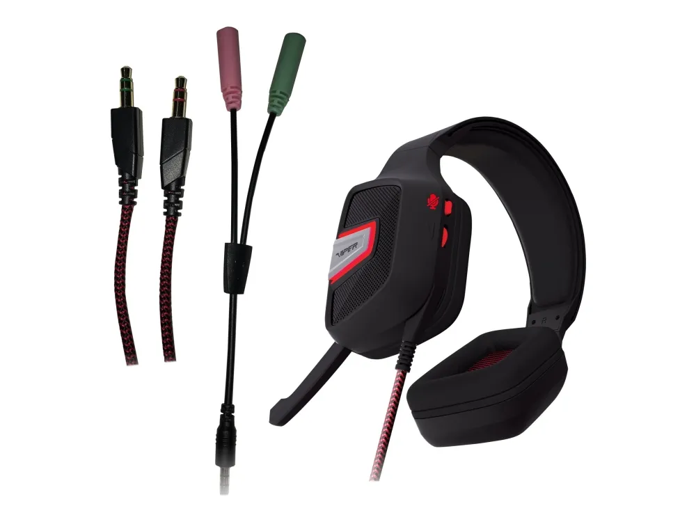 The Patriot Viper V330 stereo gaming headset is designed to provide an enhanced PC and mobile gaming experience. Engineered with a closed back and ergonomic ear cups, the V330 blocks out environmental noise and fits comfortably over the ears to keep you relaxed and focused on you game longer. The built-in microphone with noise cancellation makes for a crystal-clear sound and folds away while not in use. Volume and microphone controls are conveniently located on the ear cup, eliminating the need for awkward and heavy audio controller on the cord. The V330 comes with a Y-splitter enabling you to play games or listen to music on your favorite mobile device.