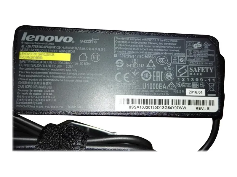Crafted for convenience, the external form factor makes this adapter easy to transport, suitable for both home and office use. The 3-pole input connector type allows for secure connectivity, while the maximum electric current of 3.25 A supports a variety of devices without compromise. The Lenovo Delta ADP-65FD B power adapter is a practical solution for powering device needs, offering versatility and dependability.
